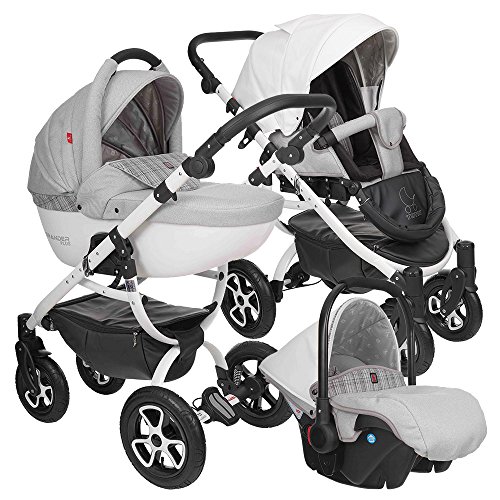 GRANDER PLUS Kombi Kinderwagen Buggy Reisebuggy 3in1 Travelsystem mit Babyschale, Farbe:eco 01
