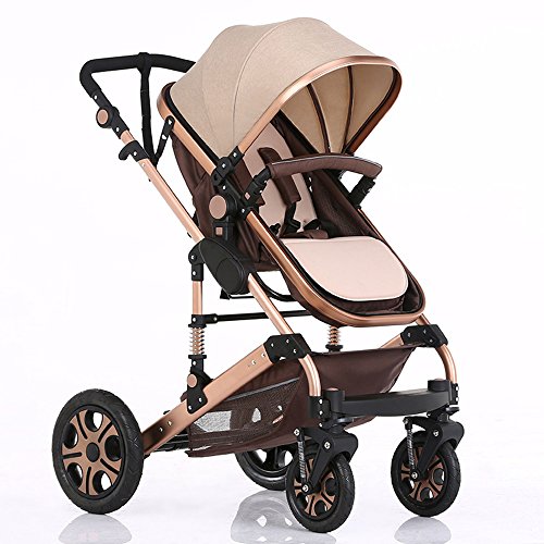Verkauf Kombikinderwagen 3 in 1, GRAVOG Faltbare Luxus 4 Räder Kinderwagen Buggy mit Sonnenverdeck, 6 Farben (Beige)