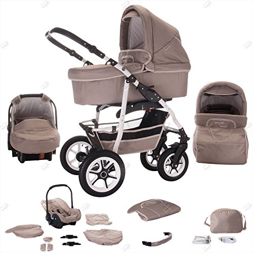 Bebebi | Modell Bellami | Luftreifen in Weiß | 3 in 1 Kombikinderwagen | Farbe: Bellataupe