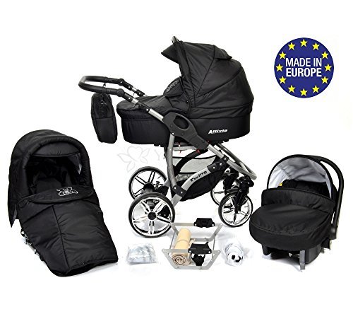 Allivio - 3 in 1 Reisesystem einschließlich Kinderwagen mit schwenkbaren Rädern, Kinderautositz, Buggy und Zubehör, Schwarz